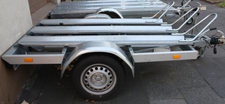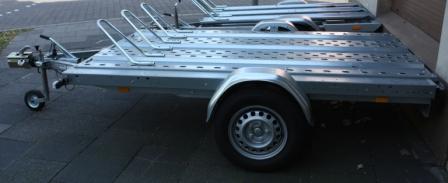 Hier unsere Typischen Motorradanhänger, Auflaufgebremst und Radstoßdämpfern für bis zu 3 Motorräder. Mit 100km/h Zulassung.